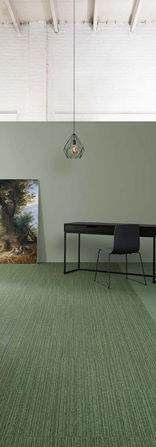RHYTHM is a carpet tile of 50 x 50 cm. This basic tile represents the regularity of daily life. It makes a perfect marriage with TRADITION. The striped pattern of RHYTHM unites two coloured zones, consisting of TRADITION tiles.